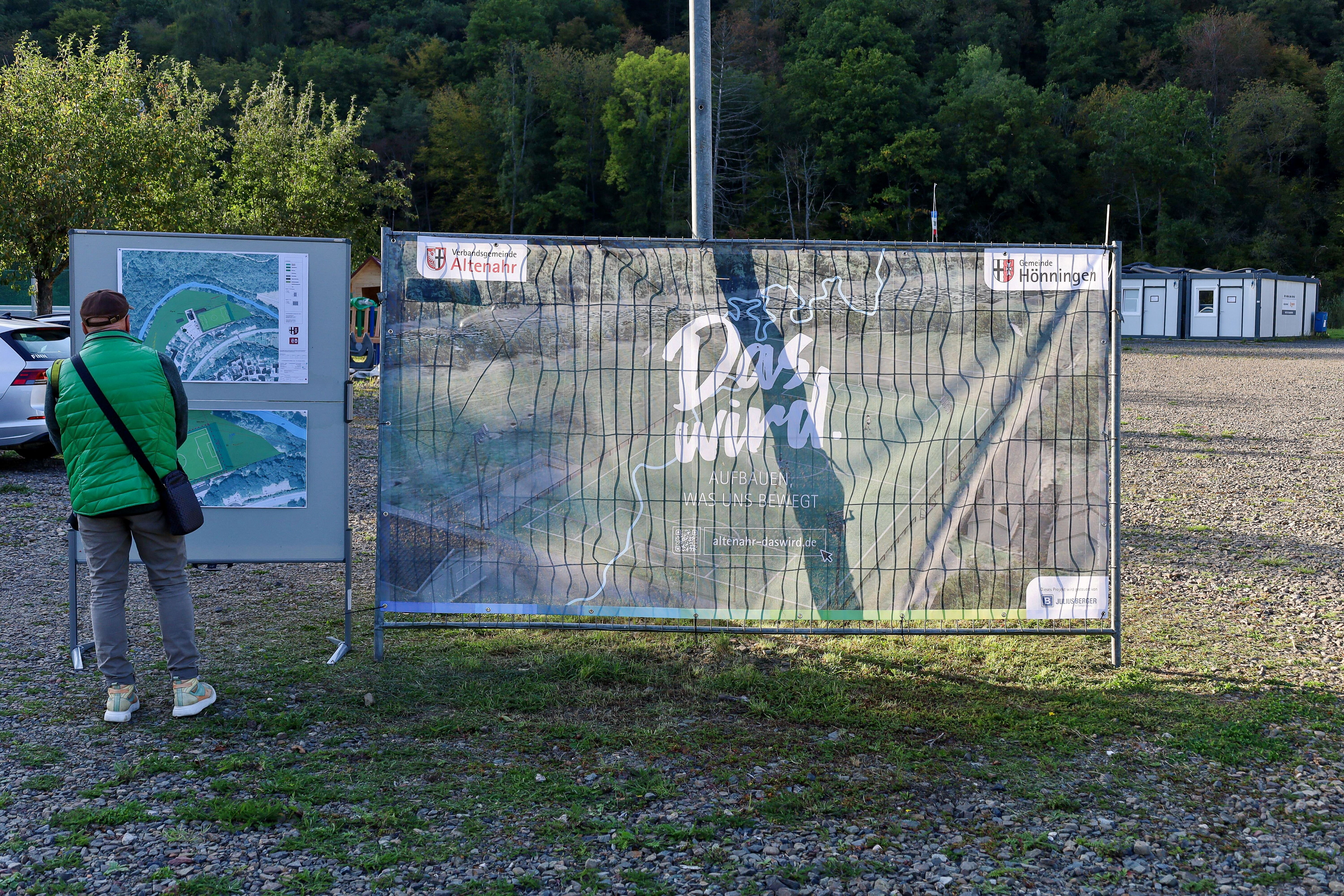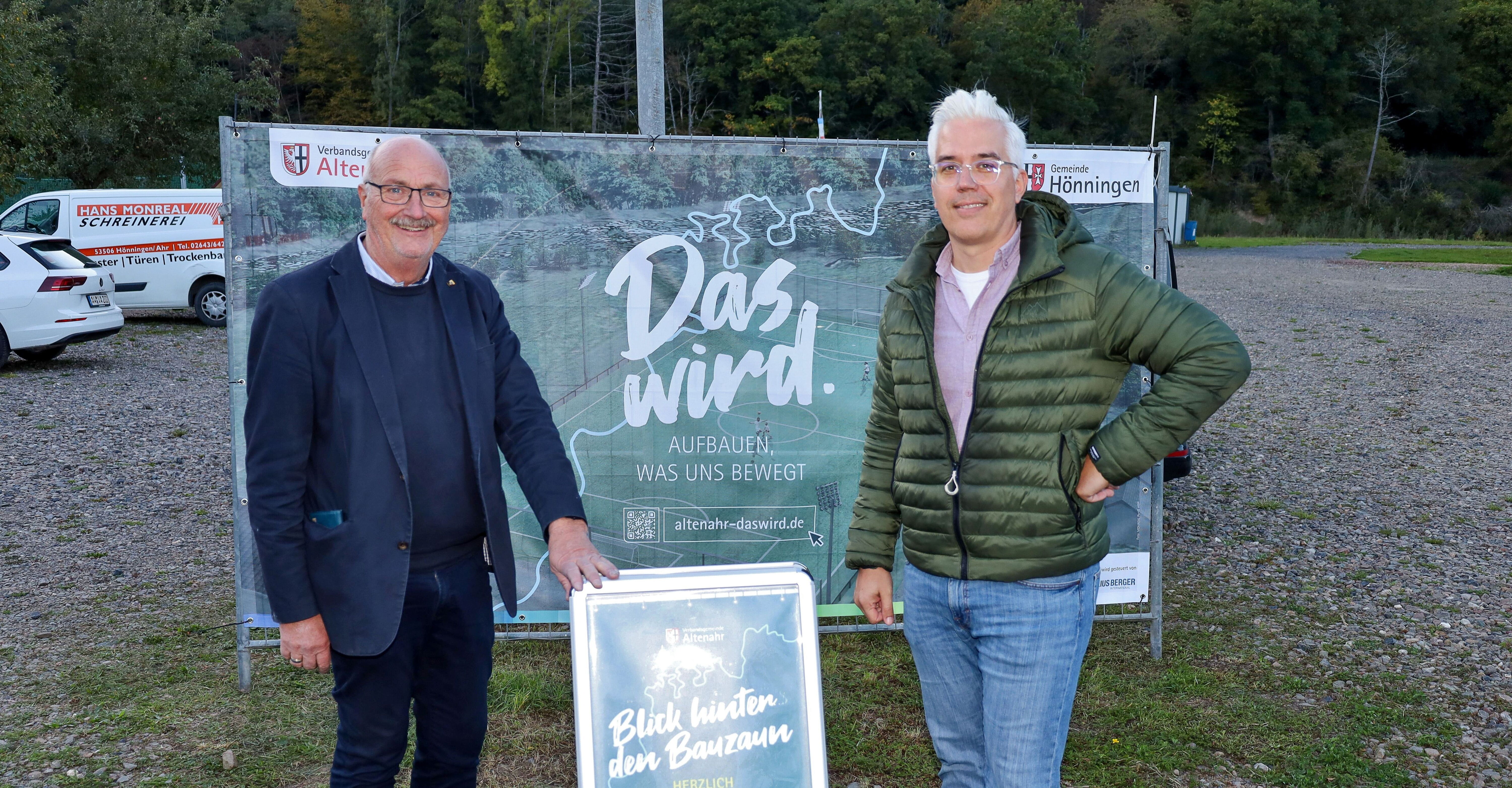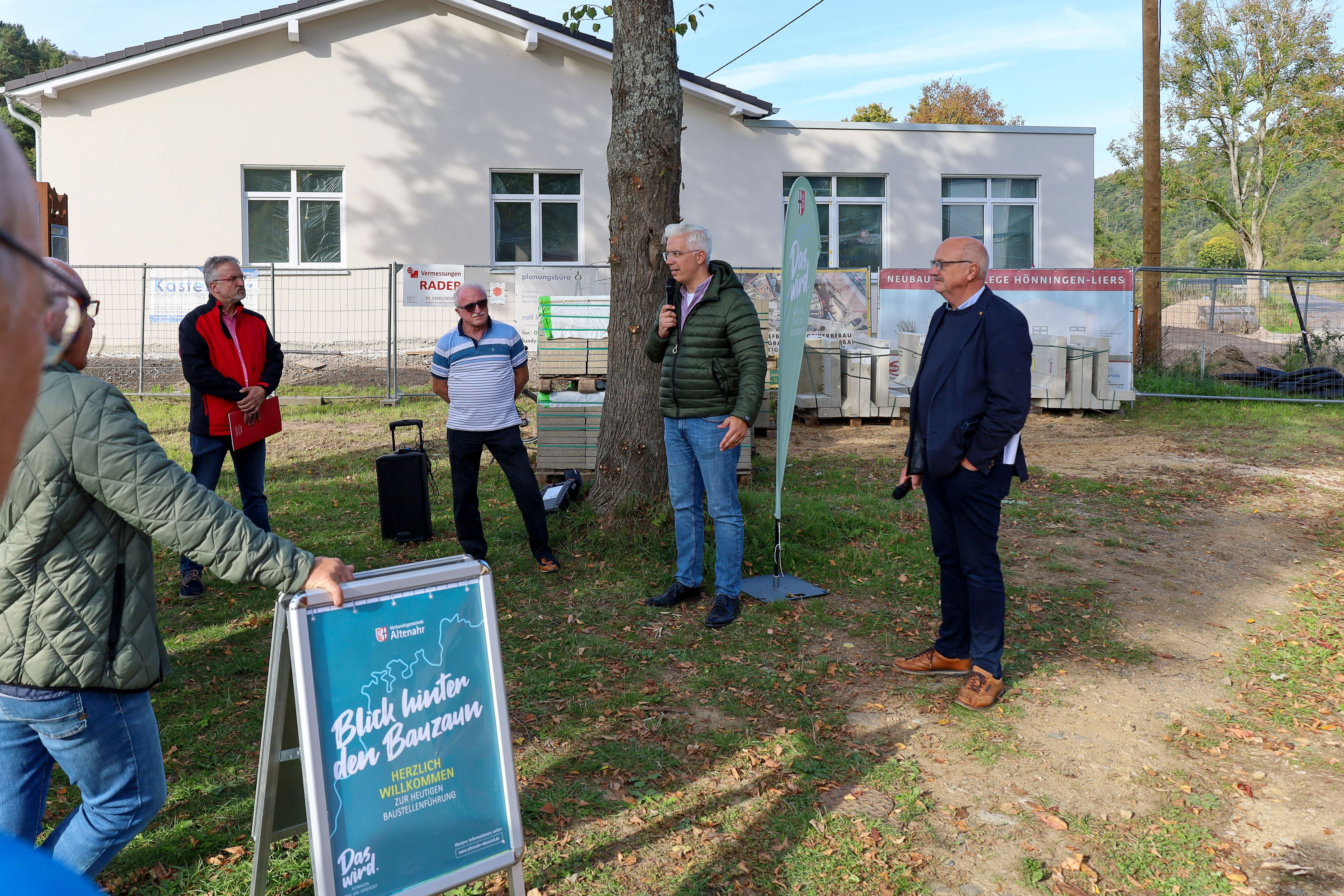 Am 2. Oktober bot sich bei zwei Baustellenführungen in der Ortsgemeinde Hönningen die Möglichkeit, einen „Blick hinter den Bauzaun“ zu werfen: Gemeinsam mit Dominik Gieler, dem Bürgermeister der Verbandsgemeinde Altenahr, sowie Hönningens Ortsbürgermeister Jürgen Schwarzmann, Mitarbeitenden des Projektsteuerers Julius Berger International und weiteren Experten besichtigten die Teilnehmenden verschiedene Baumaßnahmen und machten sich ein Bild vom Fortschritt des Wiederaufbaus vor Ort. „Ich freue mich, dass wir in der Ortsgemeinde Hönningen erstmals das neue Format anbieten, das in Zukunft auch in weiteren Ortsgemeinden stattfinden soll. Alle Interessierten sind herzlich zu den Baustellenführungen eingeladen – ob sie in der Verbandsgemeinde wohnen oder sich einfach über den Wiederaufbau informieren möchten“, so Bürgermeister Dominik Gieler.
