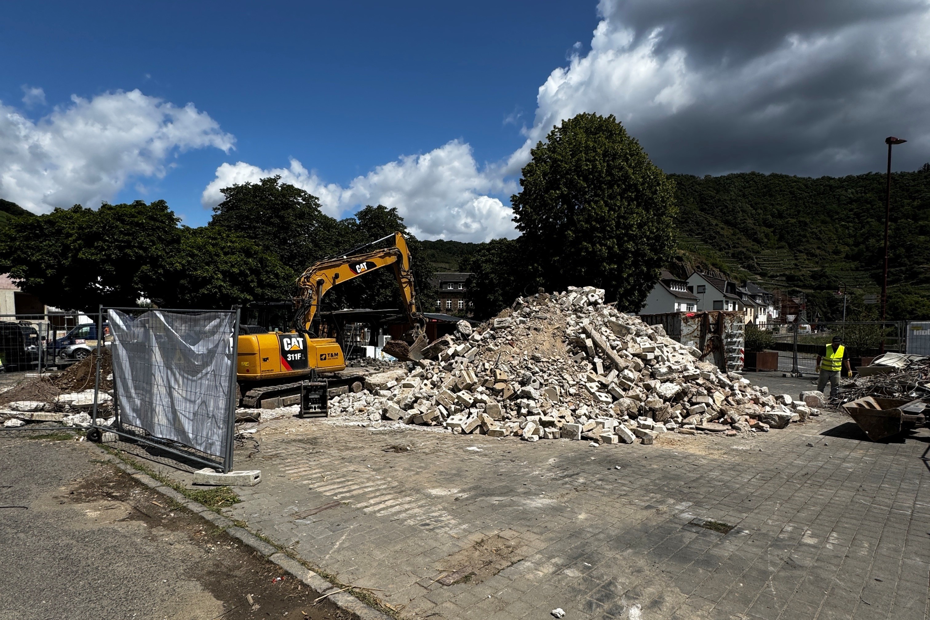 Im Spätsommer 2025 konnte der Rückbau des Weinbrunnens beginnen. Mit dem Rückbau der durch die Verbandsgemeinde Altenahr und Ortsgemeinde Mayschoß angekauften Gebäude und Grundstücke können bis Anfang 2026 die Grundlagen für die Neubeplanung geschaffen werden.